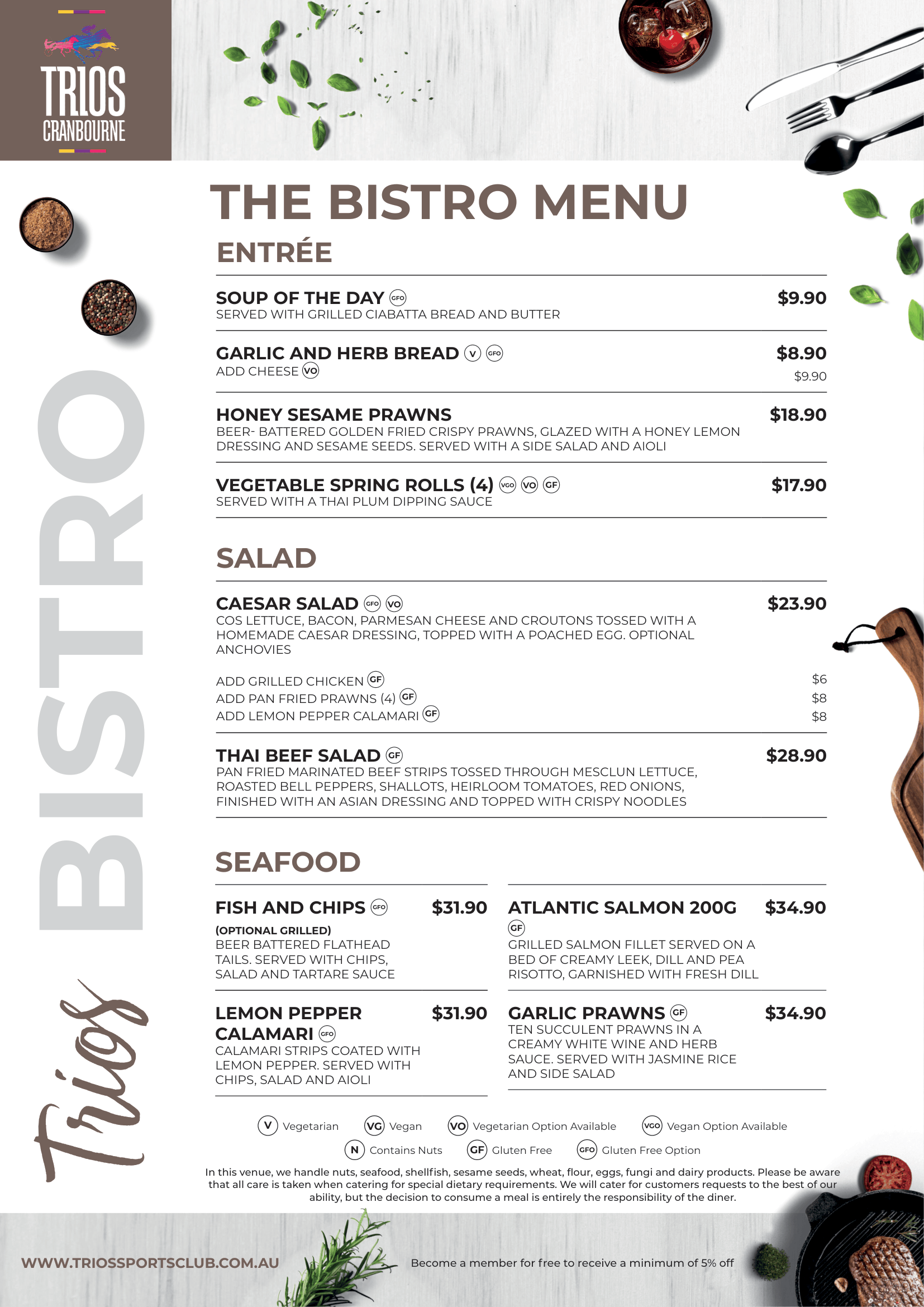 With a moderately priced a la carte menu, Trios is the ideal place for Family dining. Our Bistro Terrace is also wonderful for sun-soaked family lunches and romantic evening dining under the stars.